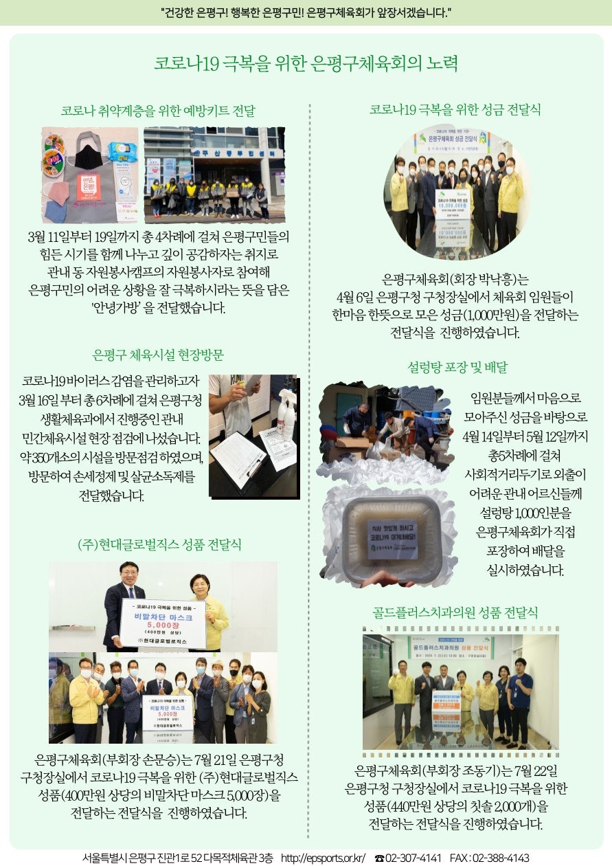 매월 업데이트 되는 은평구체육회 소식지를 통해 체육회 진행 업무 및 행사를 알려드릴 예정입니다.