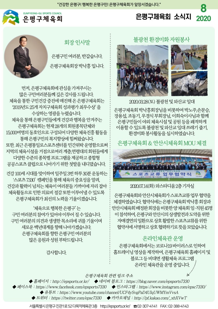 은평구체육회의 소식을 전해드릴 수 있는 은평구소식지를 다음과 같이 안내드립니다.